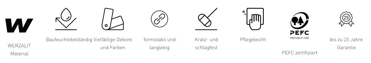25 Jahre original Werzalit Garantie - Große Auswahl an Formen, Dekoren und Abmessungen - UV-resistent - Hochwertig, langlebig- Formstabil - UV-beständig - Baufeuchtebeständig - Lebensmittelecht - Einfach zu reinigen - Keine gesundheitlichen Risiken - Umweltfreundlich